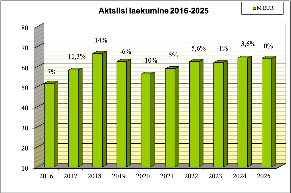 | Allikas: Rahandusministeerium | Õlleaktsiisid eurodes ja muutus ajas (etanoolisisalduse 1% vol kohta hektoliitris) |